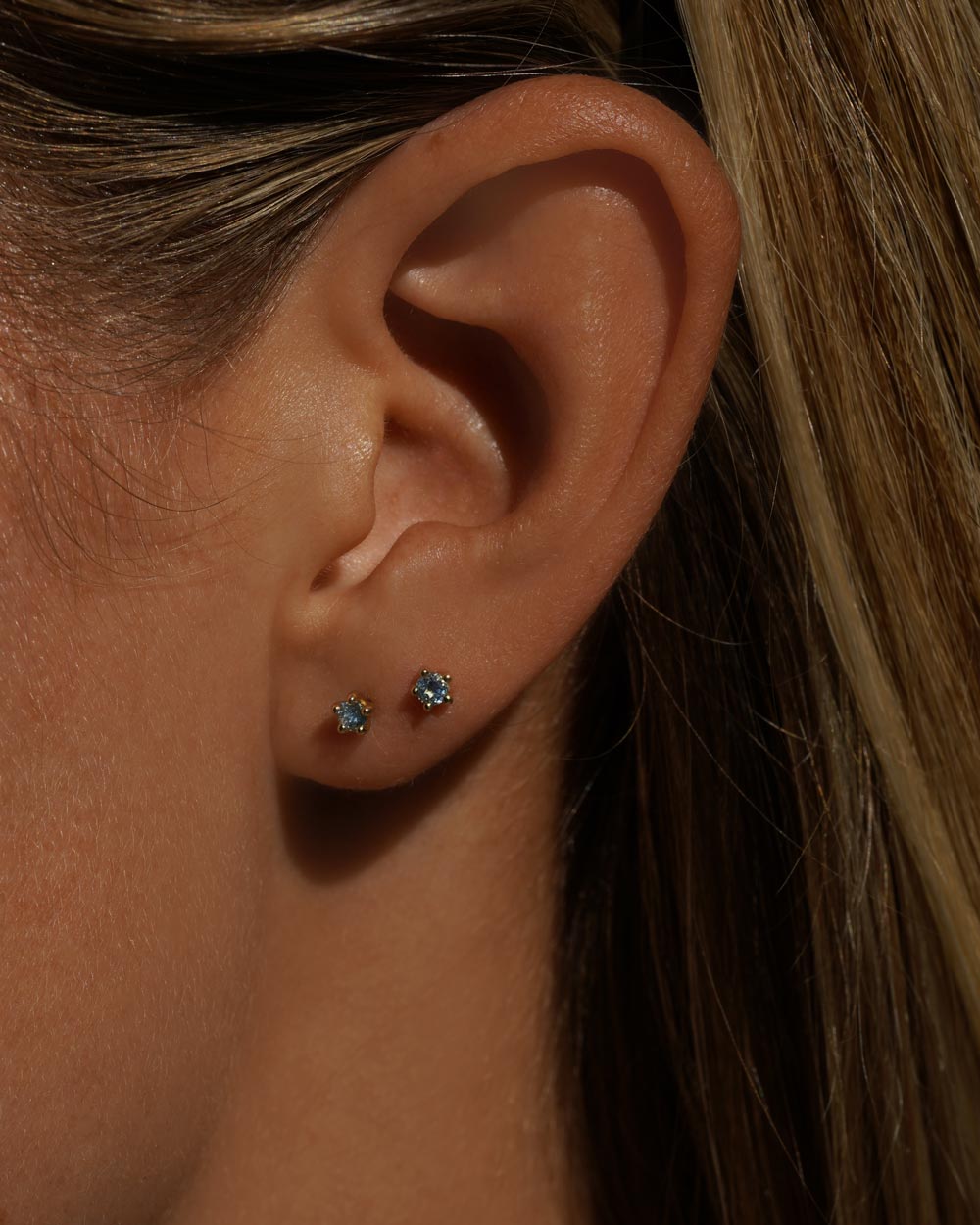Ceibo naušnice izrađene su od 9-karatnog zlata, a svaka naušnica sadrži po jedan okrugli plavi topaz, promjera 2.4 – 2.5mm.