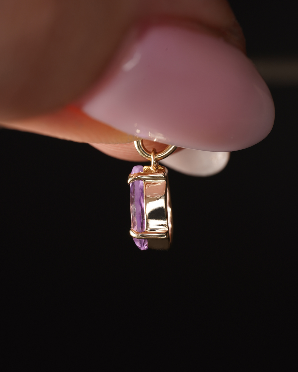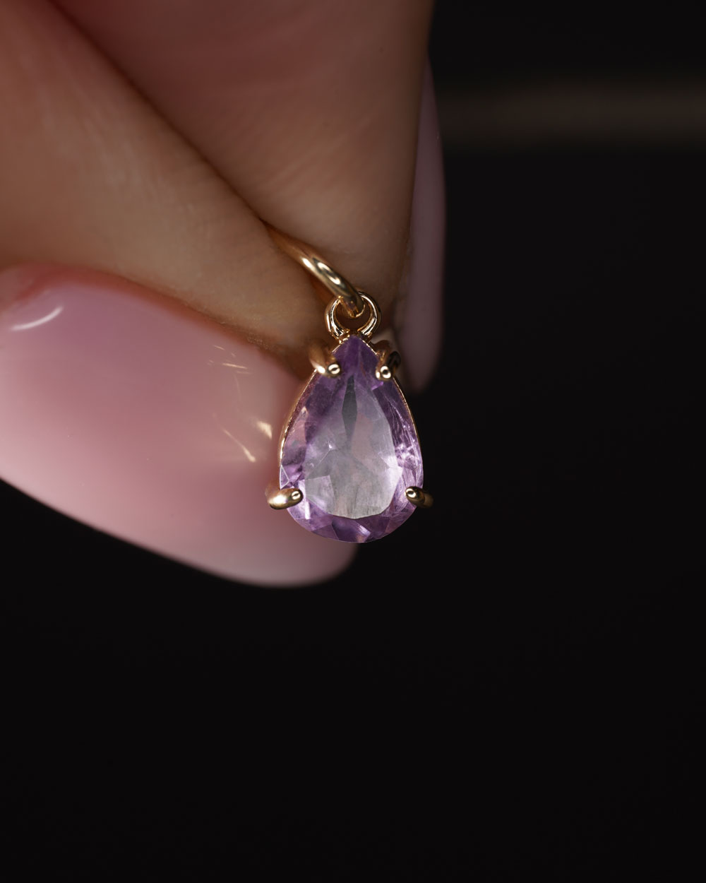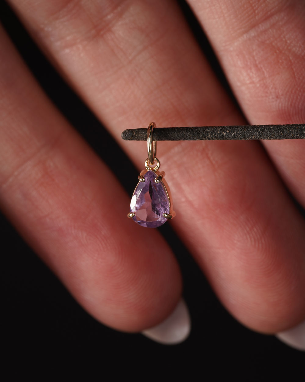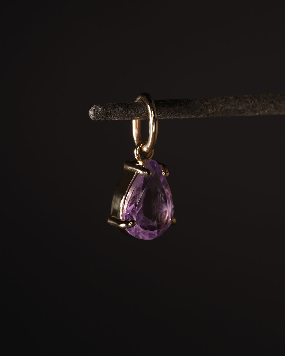Privjesak Arcalis napravljen je od 9ct žutog zlata, a u sebi ima prirodni ametist ljubičaste boje. Arcalis ima dobro poznati oblik suze.