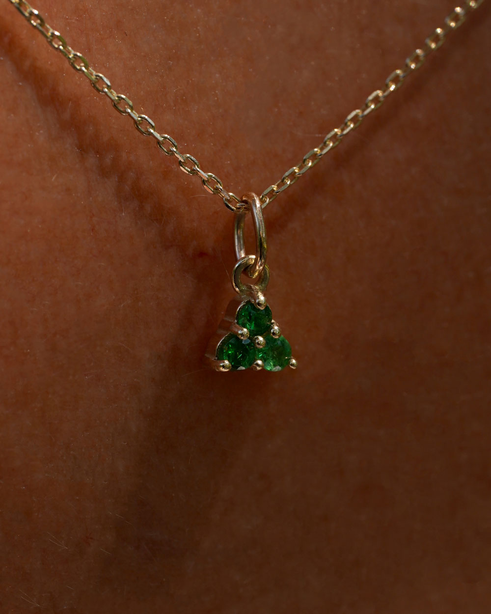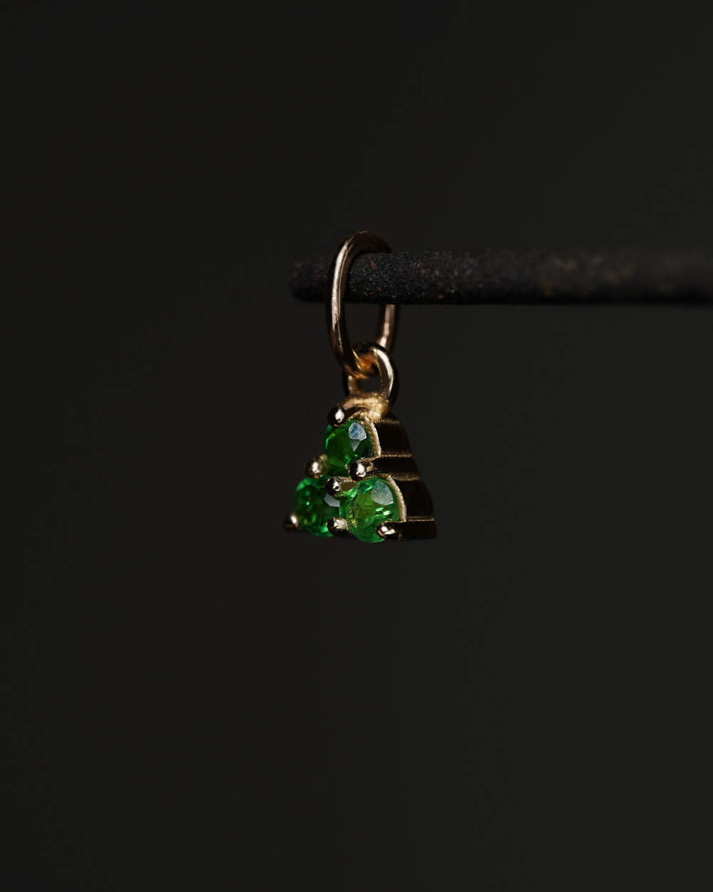 Privjesak Atrion izrađen je od 9-karatnog zlata i ukrašen s tri prirodna granata tsavorita promjera 1,8 – 2 mm.