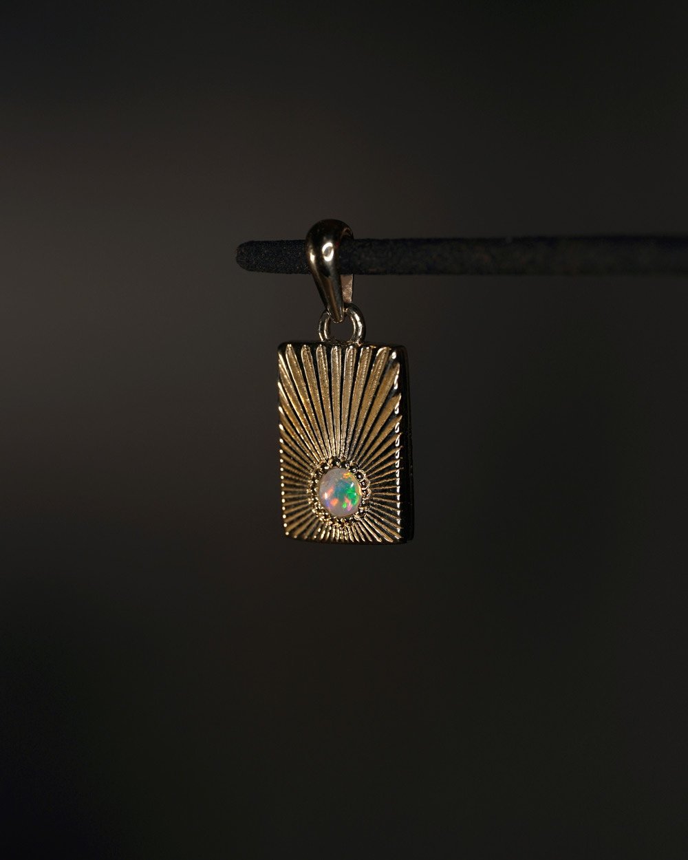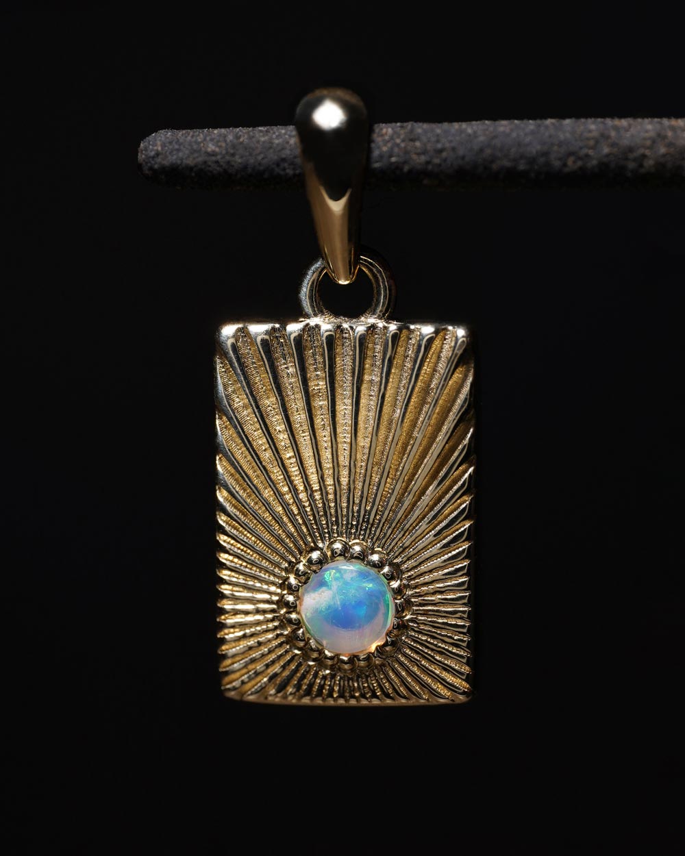 Privjesak Icarus izrađen je od 9-karatnog zlata i ukrašen prirodnim opalom promjera 2,2-2.4 mm.