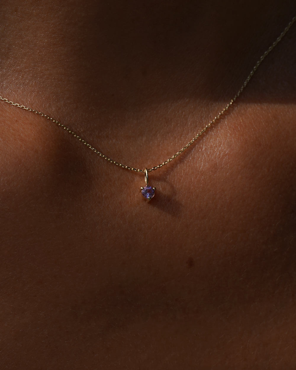 Mini privjesak od 9-karatnog žutog zlata s prirodnim ametistom ljubičaste boje.
