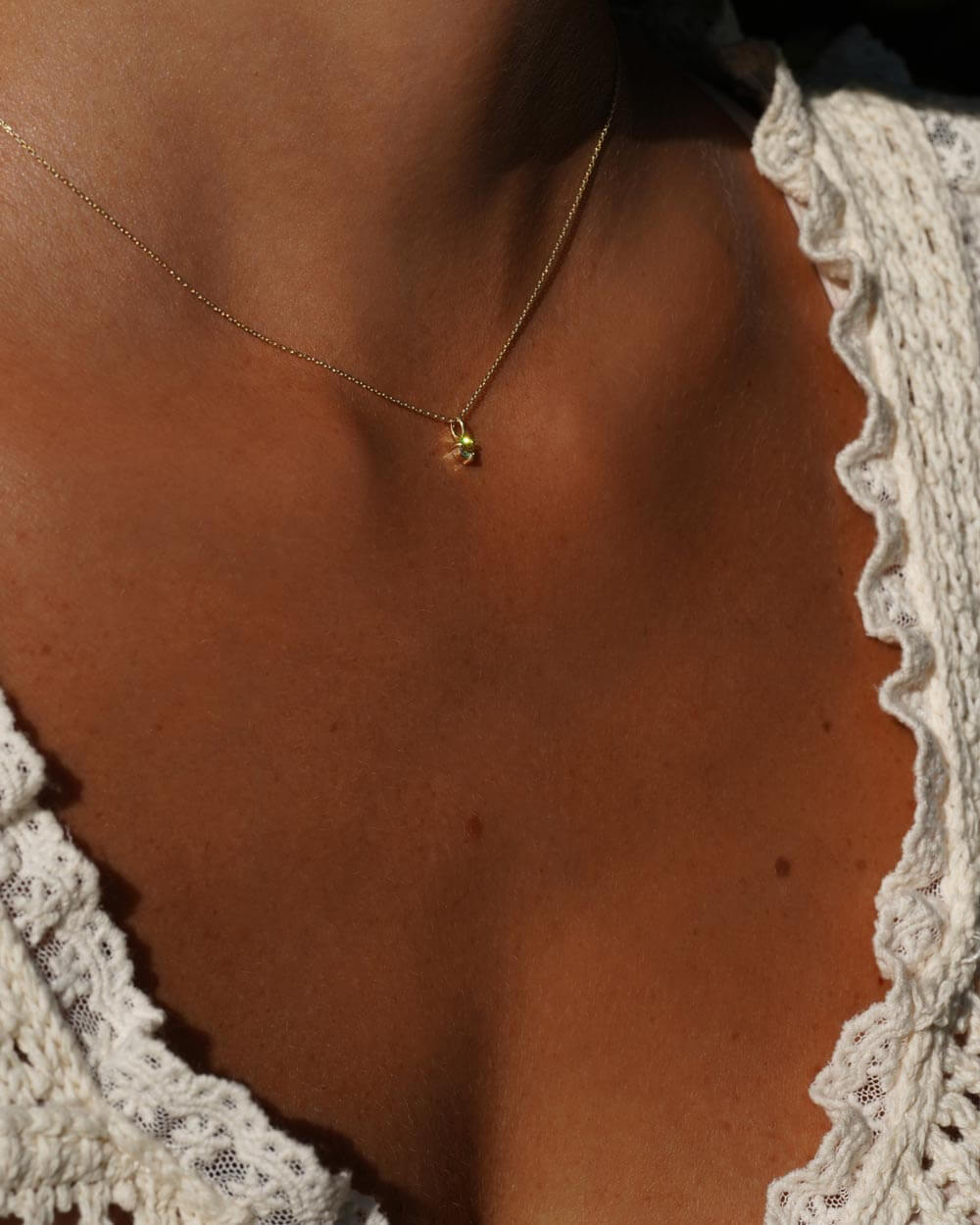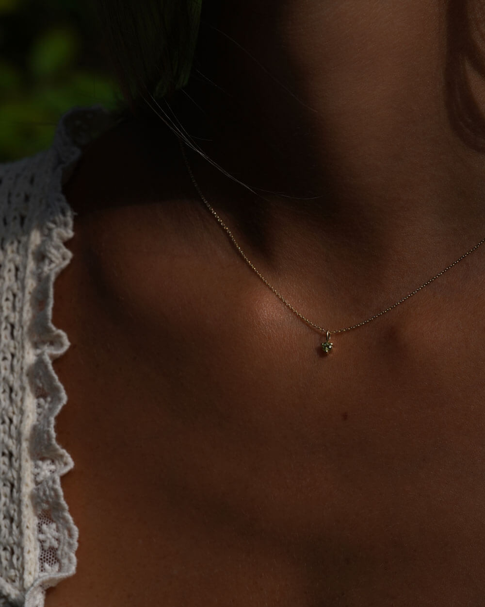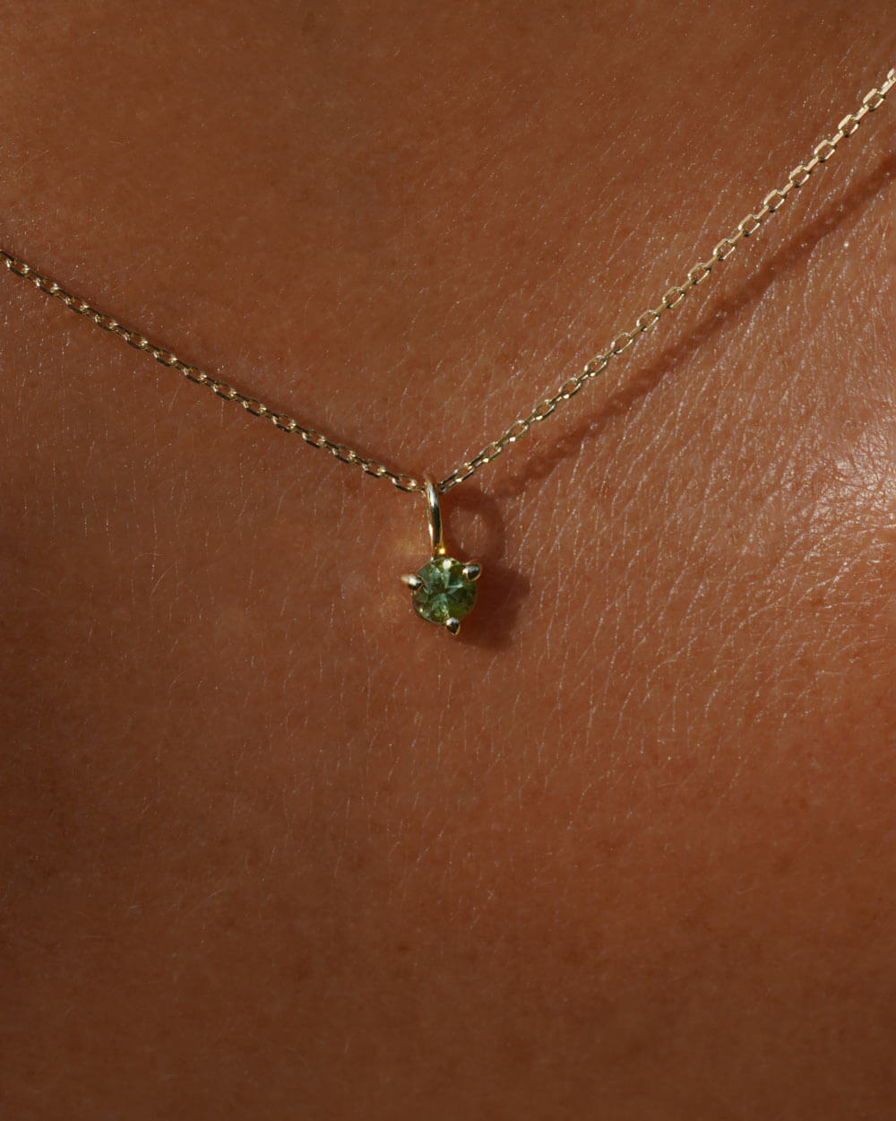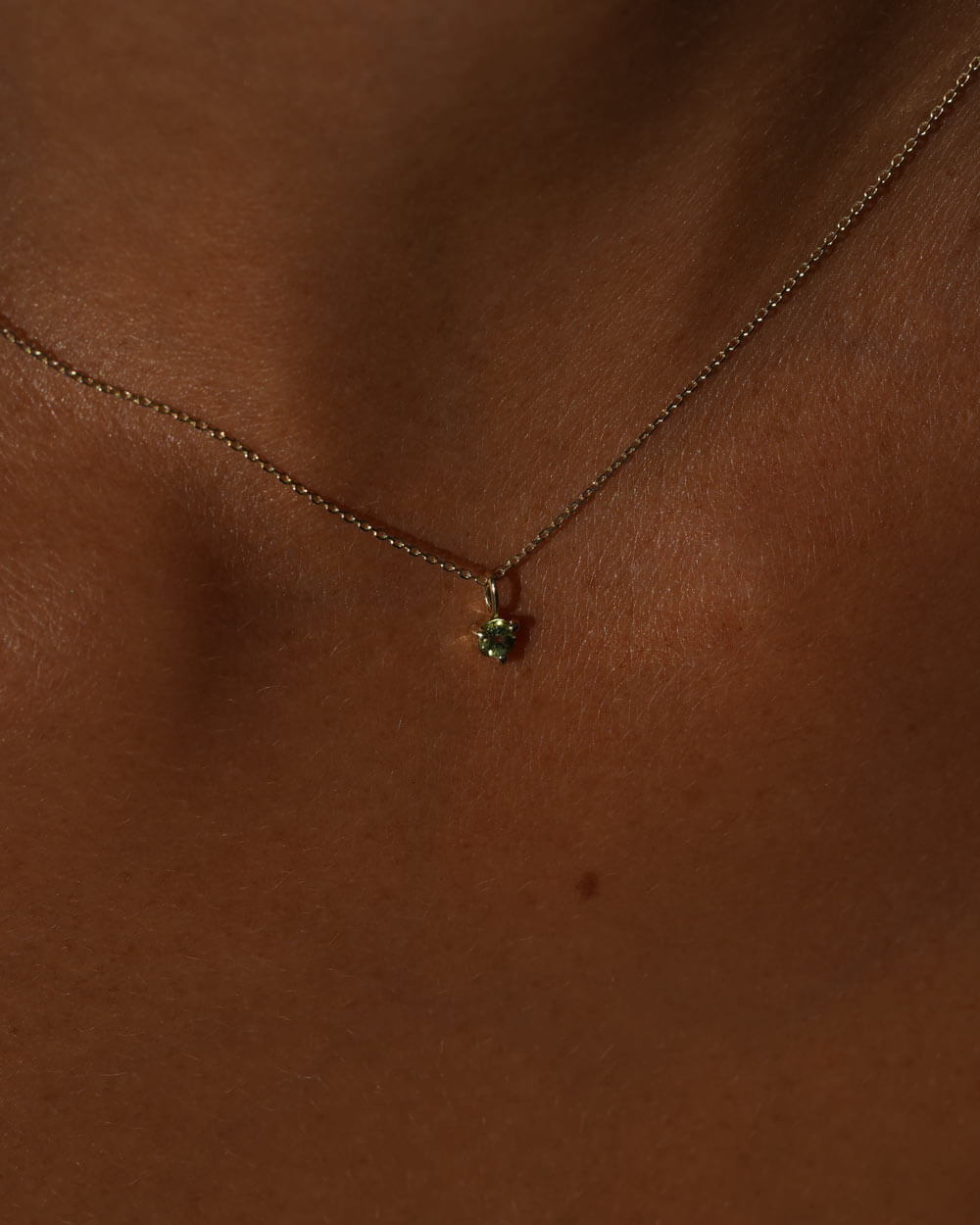 Mini privjesak od 9-karatnog žutog zlata s prirodnim peridotom zelene boje.