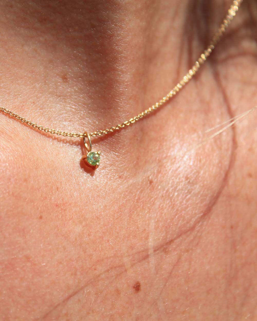 Privjesak od 9-karatnog žutog zlata s prirodnim peridotom zelene boje.