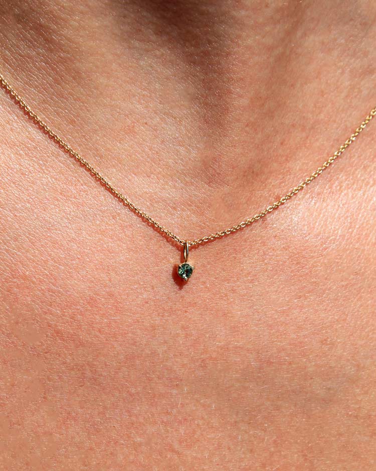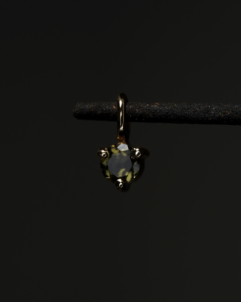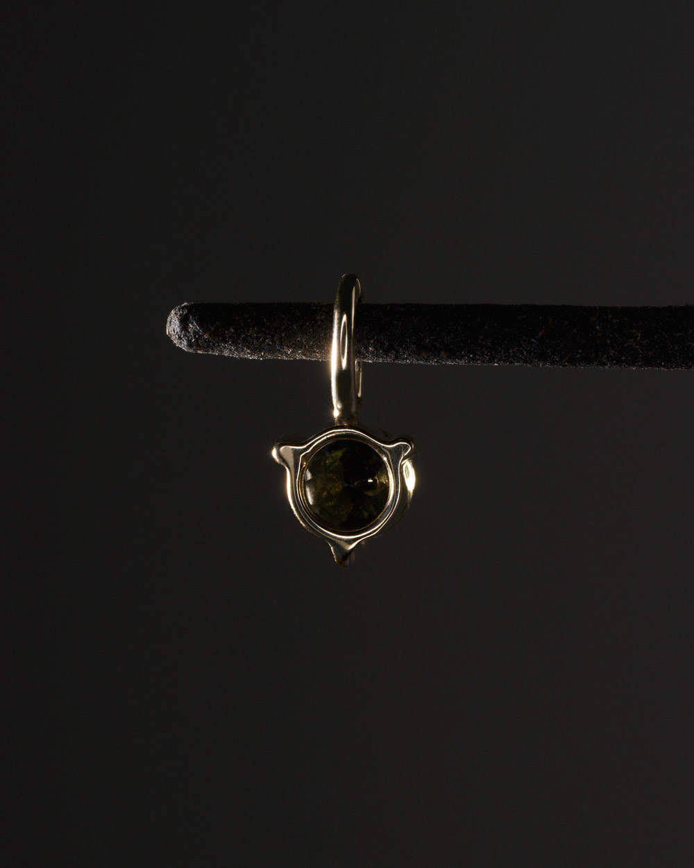Privjesak od 9-karatnog žutog zlata s prirodnim maslinasto zelenim turmalinom, promjera 3.5 mm.