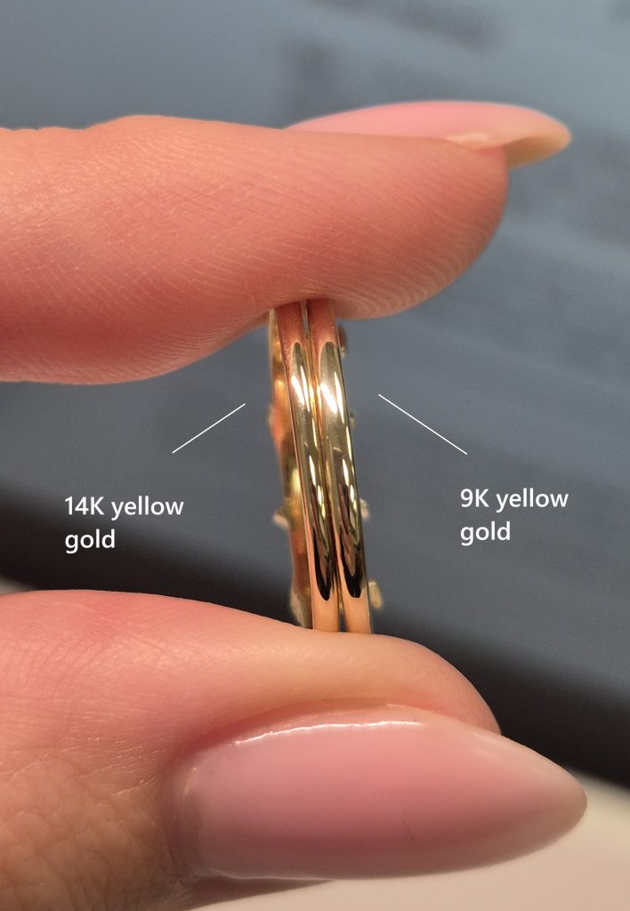 2. Sklonije tamnjenju – mit je da 14 i 18K zlato ne tamni i ne oksidira. Međutim sporije i teže od drugih mješavina zlata. 9-karatno zlato zbog većeg udjela srebra i drugih metala može lakše oksidirati, no to se ne događa lako ni brzo. Jedino 24K zlato ne tamni jer je kemijski vrlo stabilno.